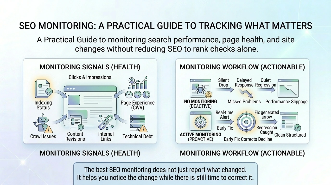 The best SEO monitoring does not just report what changed. It helps you notice the change while there is still time to correct it.